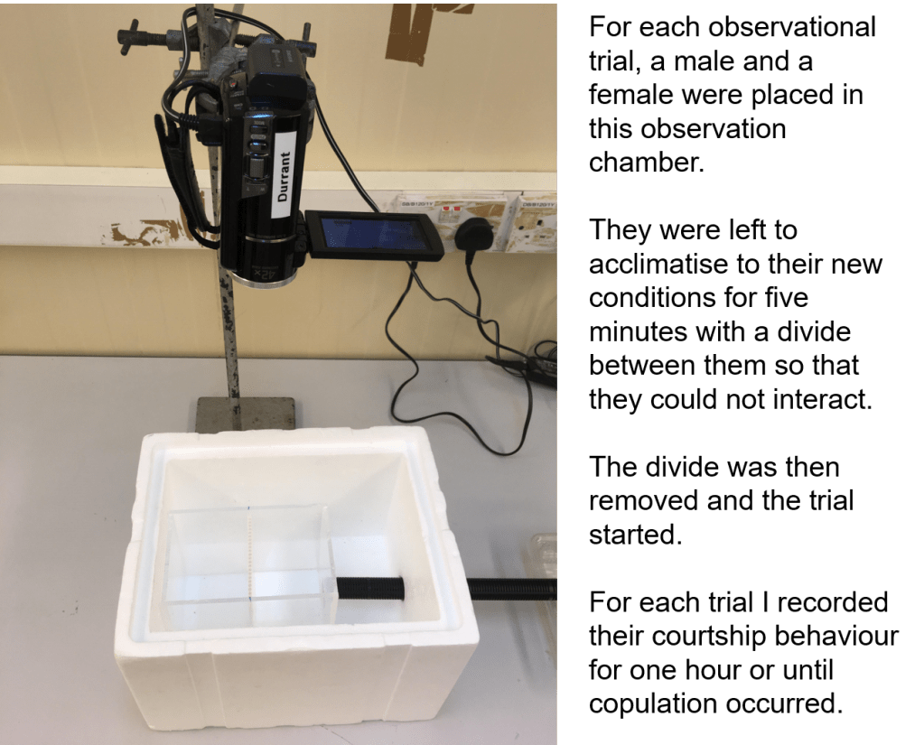 I have already completed the courtship observational trials which involved a number of steps: